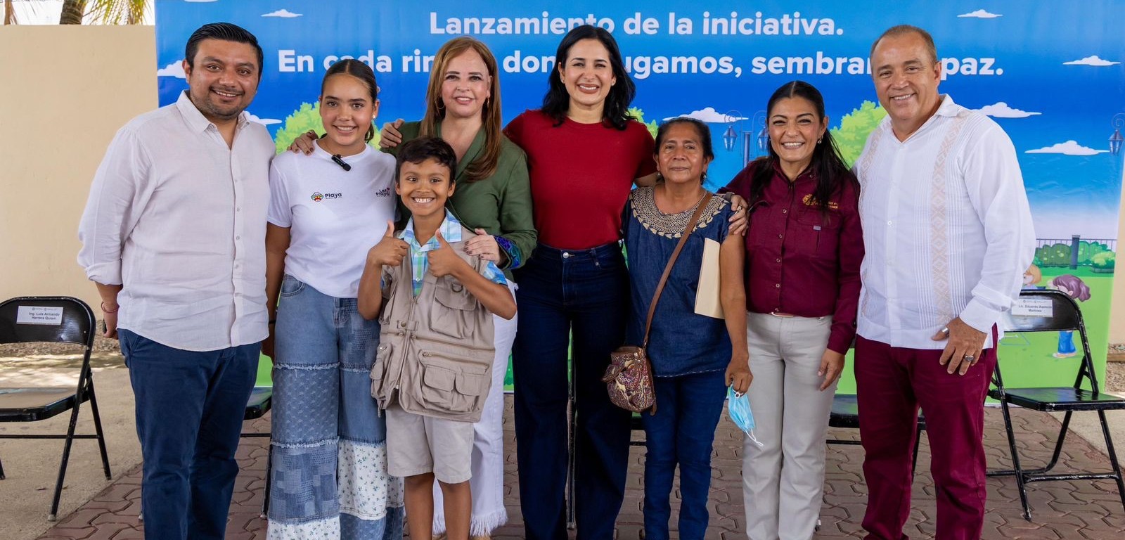 Playa del Carmen, 27 de marzo de 2026.— La presidenta municipal, Estefanía Mercado, y la secretaria ejecutiva nacional del Sistema de Protección Integral de Niñas, Niños y Adolescentes (SIPINNA) Lorena Villavicencio Ayala, pusieron en marcha la iniciativa “En cada rincón donde jugamos, sembramos paz”, en el domo de la colonia “La Guadalupana”, con un llamado a fortalecer entornos seguros y garantizar los derechos de niñas, niños y adolescentes.