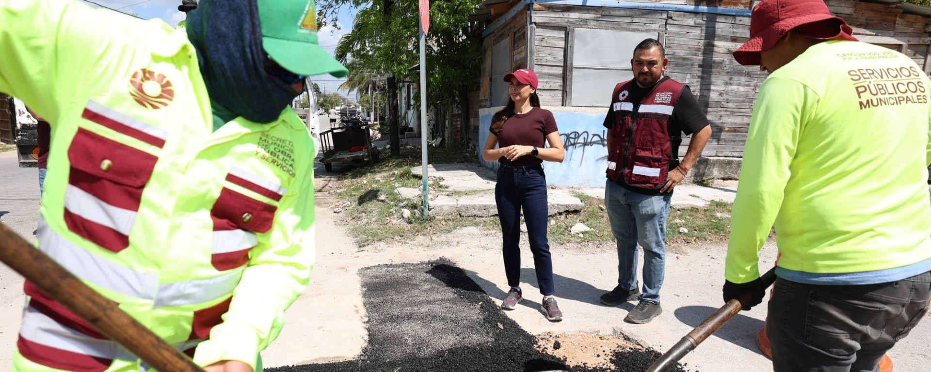 Cancún, Q. R., a 30 de marzo de 2026.- En cumplimiento al programa de bacheo en la ciudad, la Presidenta Municipal, Ana Paty Peralta, supervisó los trabajos de atención de un reporte generado a través de ChatCun, con el objetivo de atender las diferentes necesidades de la ciudadanía.