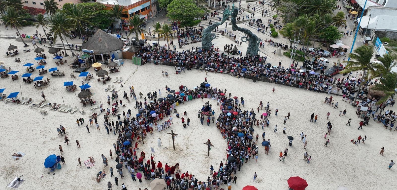 Playa del Carmen, Quintana Roo, 3 de abril de 2026.– Como parte de las acciones impulsadas por el Gobierno de Playa del Carmen que encabeza la presidenta municipal Estefanía Mercado, la Secretaría de Seguridad Ciudadana desplegó un operativo de vigilancia y apoyo en playas, zonas turísticas y durante las representaciones del Vía Crucis realizadas este Viernes Santo, en el marco del Plan de Acción Semana Santa 2026.