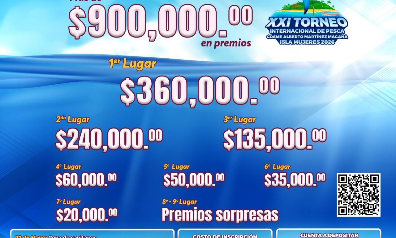 Para esta edición, se contará con una bolsa de premios superior a los 900 mil pesos, incluyendo un primer lugar de 360 mil pesos, lo que posiciona a este torneo como uno de los más atractivos del Caribe Mexicano, además de promover la sana competencia, la convivencia familiar y la proyección turística de Isla Mujeres.