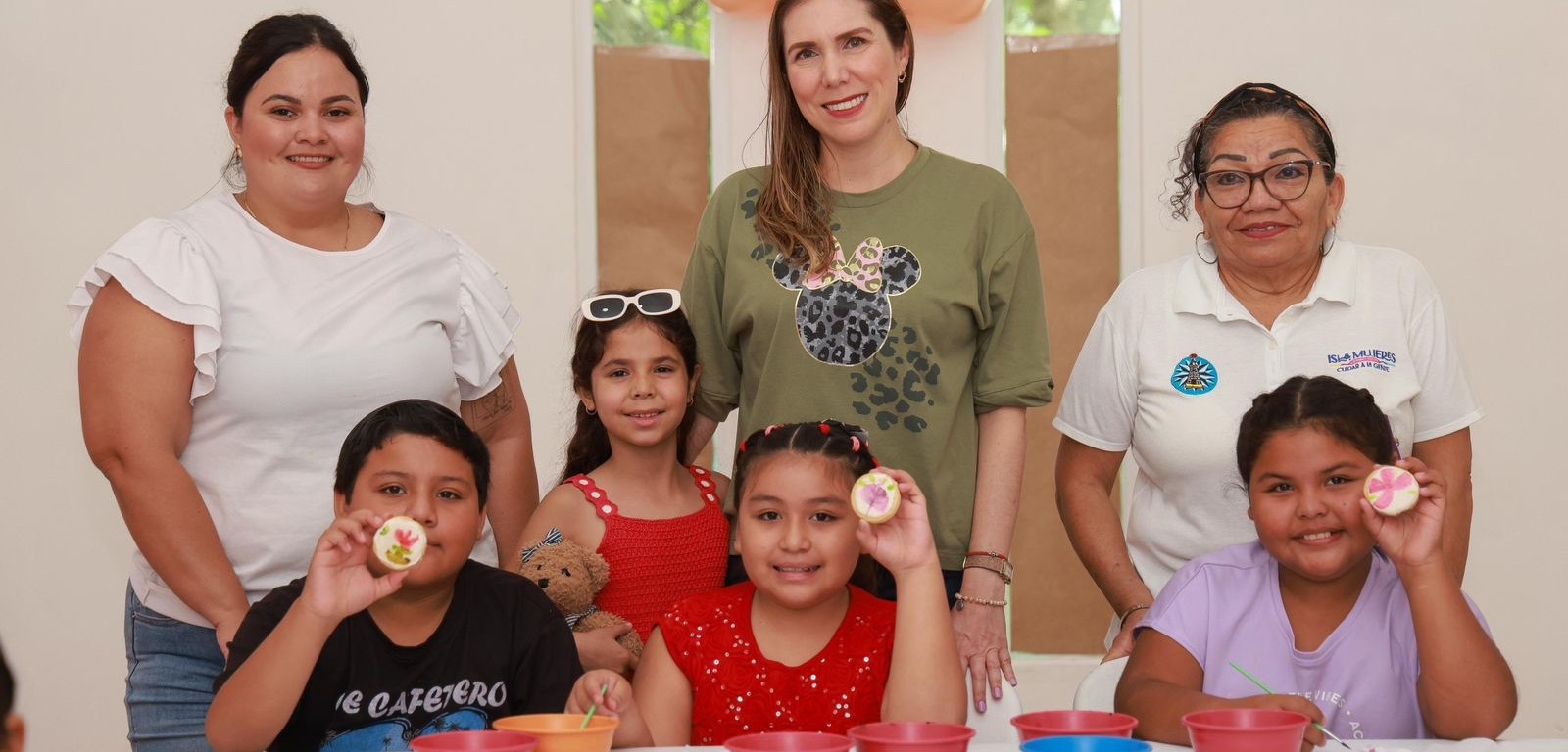 Durante el arranque de actividades, la Presidenta Municipal, Atenea Gómez Ricalde, visitó a las niñas y niños que participan en los talleres de Repostería y Elaboración de Servilletas Bordadas a Mano, donde convivió con ellas y ellos, reconociendo su entusiasmo y dedicación.