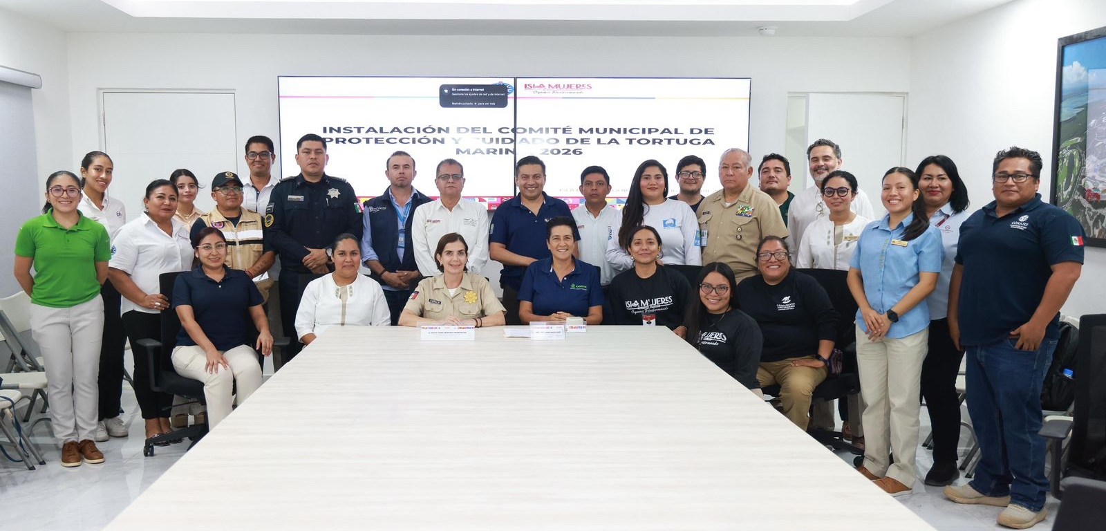 Isla Mujeres, Quintana Roo, 16 de abril de 2026.- Con el objetivo de cuidar y proteger a las tortugas marinas que cada año llegan a las playas de Isla Mujeres, el Gobierno Municipal que encabeza la Presidenta Atenea Gómez Ricalde llevó a cabo la instalación del Comité de Protección y Cuidado de la Tortuga Marina para la temporada 2026.