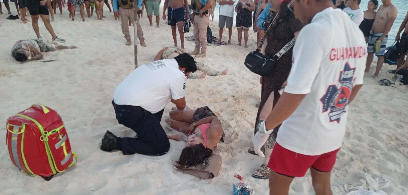 De manera inmediata, guardavidas del hotel, en coordinación con elementos de Protección Civil, activaron los protocolos de atención, brindando primeros auxilios y solicitando el apoyo de unidades médicas. En total, cuatro ambulancias acudieron al sitio para la atención y traslado de los afectados.