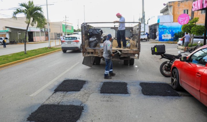 Continúa el programa de bacheo en Playa del Carmen y Puerto Aventuras