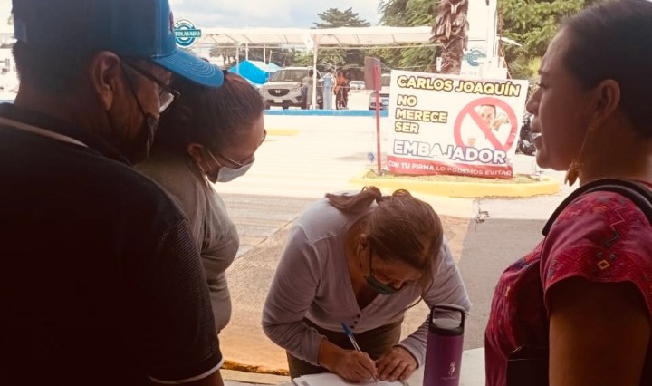 Avanza recolección de firmas en Quintana Roo en contra del nombramiento de Carlos Joaquín como embajador