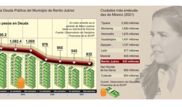 Realidades.- El Municipio de Benito Juárez, Quintana Roo es el octavo municipio con mayor deuda pública del país con un monto de 932 MDP según un estudio del Congreso. Durante su paso como alcaldesa de BJ en su primer periodo … Continúa leyendo Mara Lezama reestructuró las finanzas públicas de Benito Juárez (Cancún); Logró reducción del 20% de la deuda pública municipal
