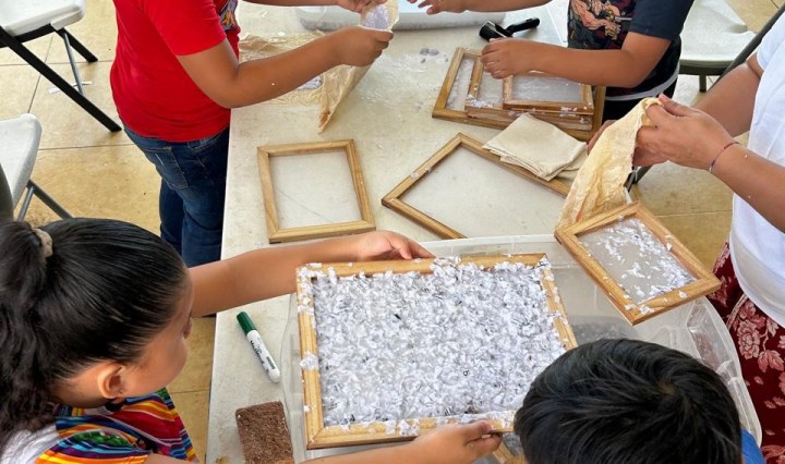 Fomenta IBANQROO la cultura ambiental en la niñez a través de taller de papel reciclado